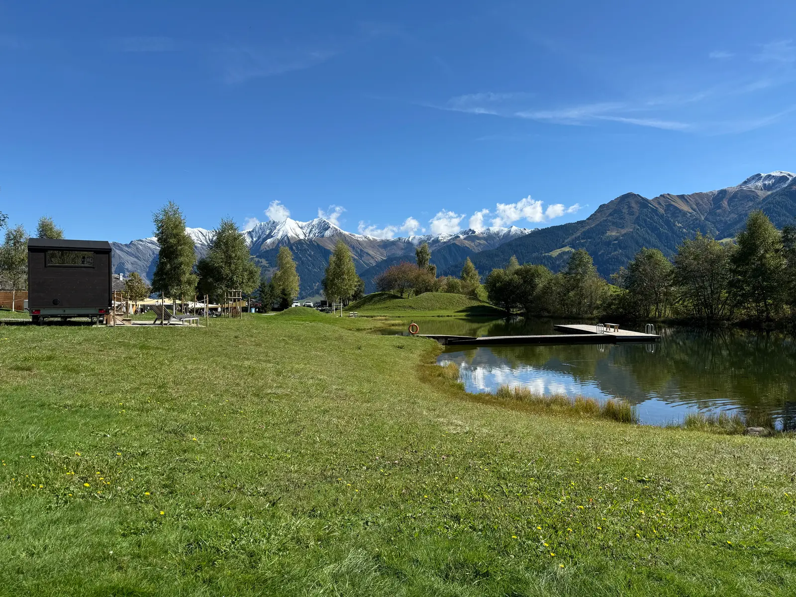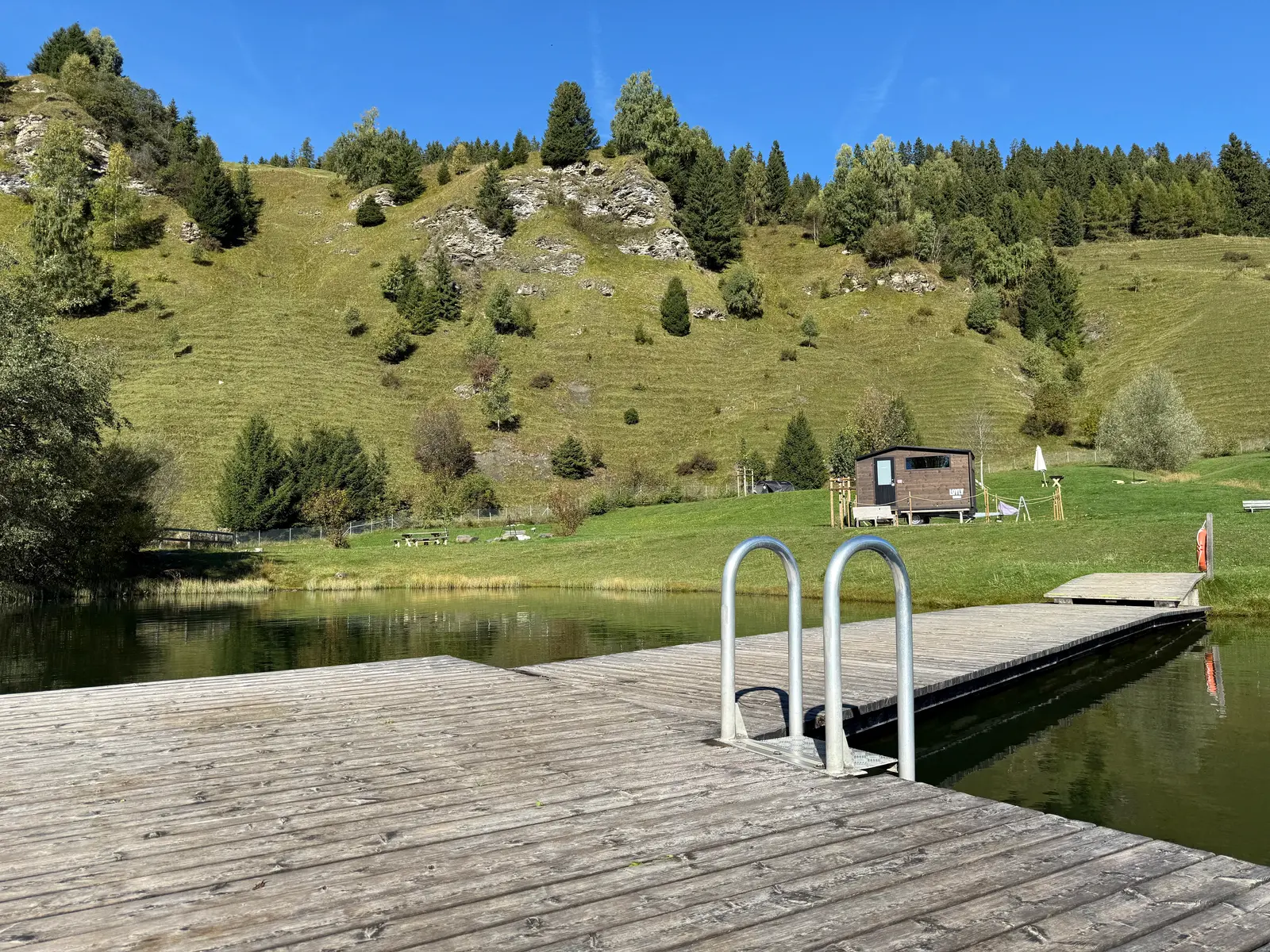 Die Sauna befindet sich direkt beim Badesee Davos Munts im Val Lumnezia mit der Adresse Lag Davos Munts 190A in 7146 Vattiz.