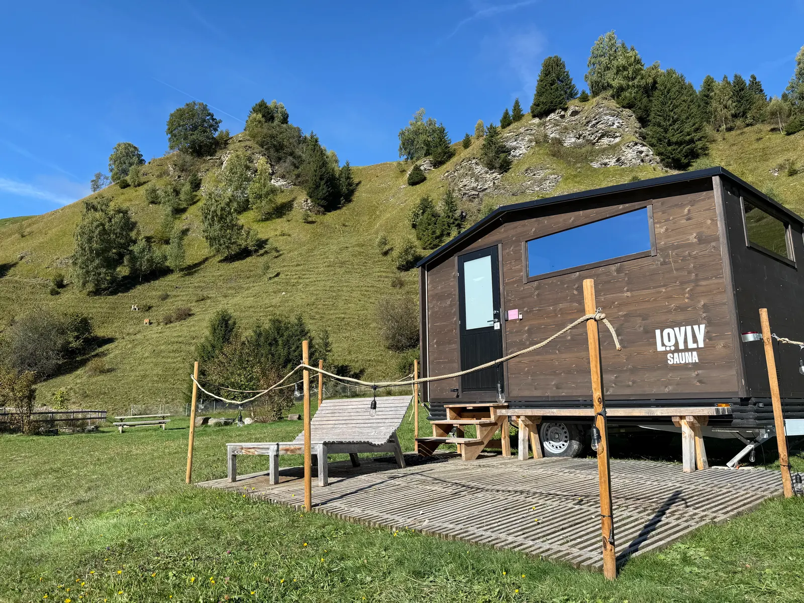 Die Saunatemperatur lässt sich vor und während des Besuchs über den Link in der Buchungsbestätigung individuell anpassen. Geniesse entspannende Stunden in der LÖYLY Sauna in Davos Munts beim Badesee mit Blick übers Val Lumnezia. Bitte halte dich ausserhalb der Sauna nur bekleidet auf, vielen Dank.