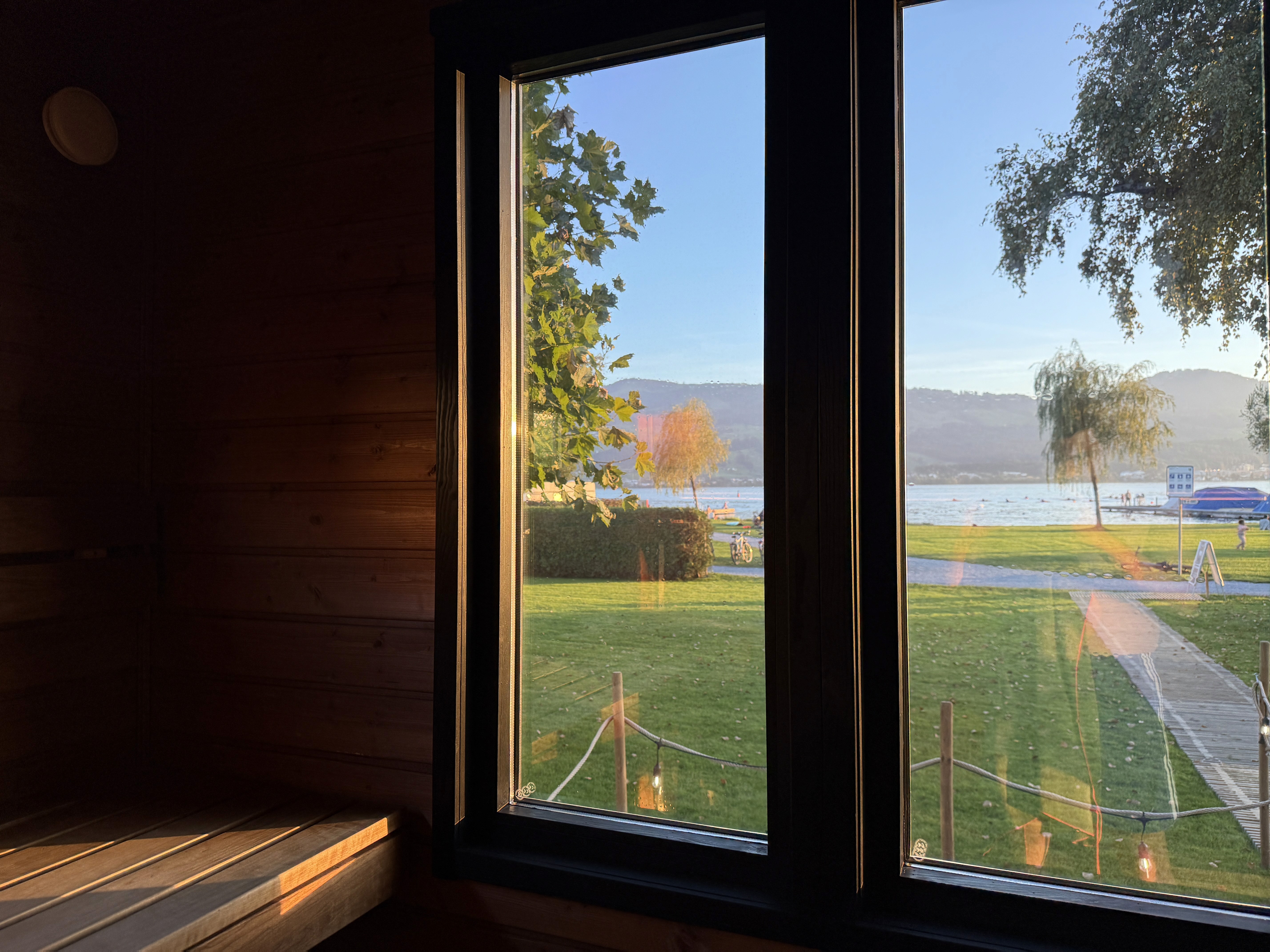 Die Sauna befindet sich im Lido in Rapperswil-Jona. Bitte benutze die Holzpanelen, um zur Sauna zu gelangen.